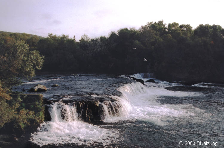 and here is the bridge and platform (far left in this shot) at Brooks River where it empties into Naknek Lake: