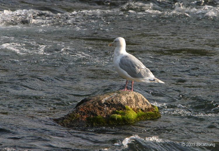 Gull On a Rock In Brooks River (Glaucous-winged gull, Larus glaucescens)