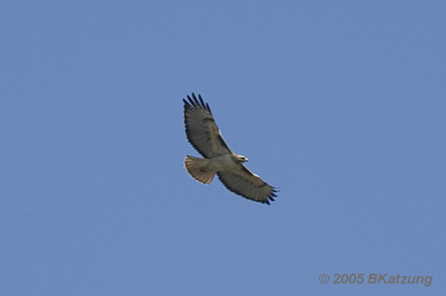 A young red-tailed hawk perched above the road into Point Reyes national Seashore. Below, another red-tail soaring near Inverness in the Point Reyes area. Center crop of the frame.