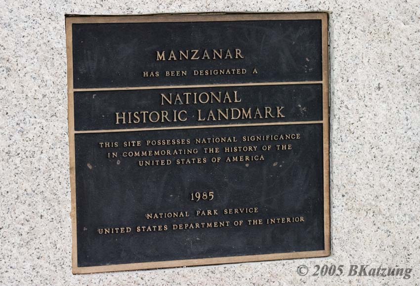 Manzanar and several other locations in the midwest and western states were used to intern more than one hundred thousand Japanese and Americans of Japanese ancestry during most of World War II. The history of this tragic episode has been written up in several books. I recommend "Farewell to Manzanar" by Jeanne Wakatsuki Houston, and "Only What We Could Carry," as excellent sources. (Less well-known is the fact that the United States also interned several thousand German-Americans and Italian-Americans during the same period, see "America's Invisible Gulag," by Stephen Fox.) We visited Manzanar in October 2004 and found a large modern Park Services building with useful models and movies of the original camp but very little else to indicate that thousands of people had lived here for 5 years. Apparently the Park Service plans to reconstruct a dormitory and some of the other buildings. The images below show some of the area.