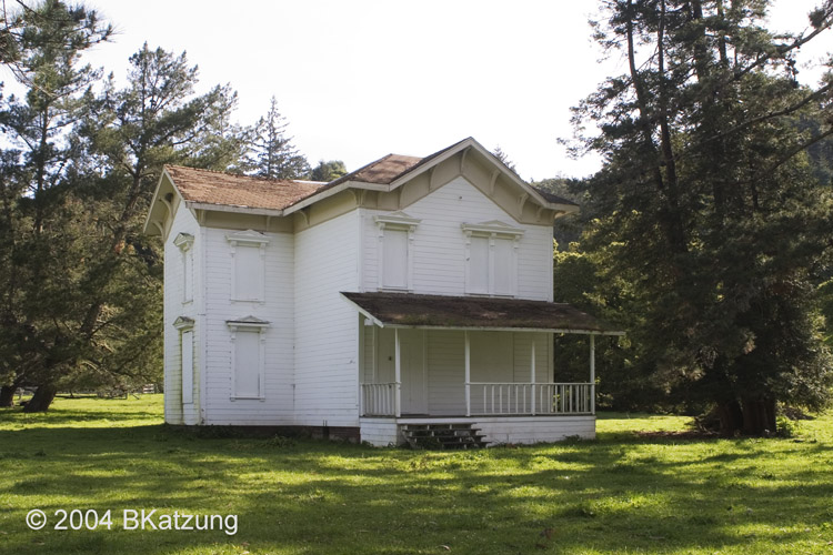 Below: A dignified old shuttered house 5.2 miles south of Olema on Hiighway 1.
