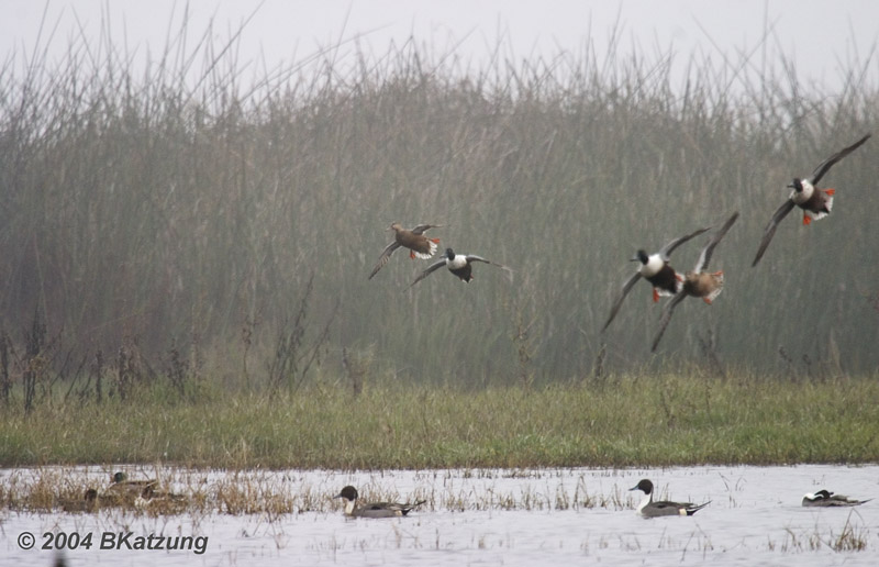 It was quite foggy when we arrived at the Merced Wildlife Preserve (WLP) but this didn't prevent the birds from flying frequently. These shovelers were only one of many duck species at the site but most were too far away on this rather dark morning for good imaging.