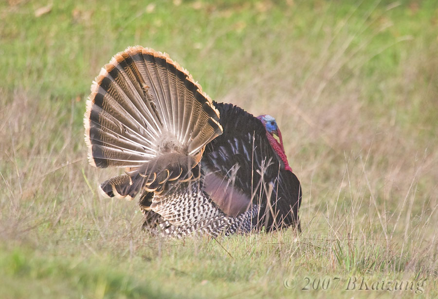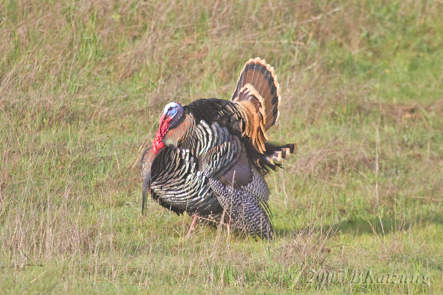 Above, the valley vista. Below, a big tom turkey, front and rear views.
