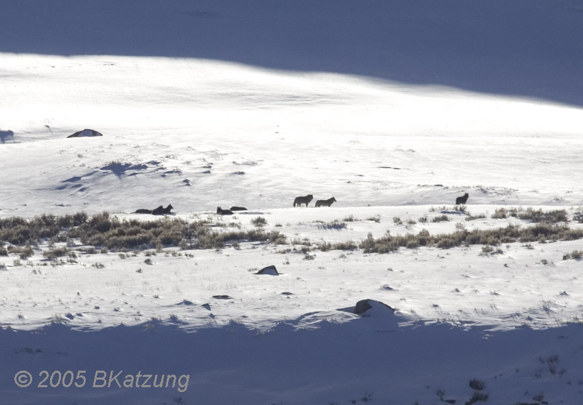 Above: late afternoon. Probably the Slough Creek Pack, a dominant pack in the Lamar Valley in 2005.