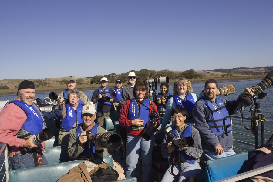 Our group of intrepid imagers on the tour boat. The boat carries twice as many passengers on regular tours but for photography tours like ours the number is limited to one per seat, so there is room for gear (including the very large lenses that you see here).