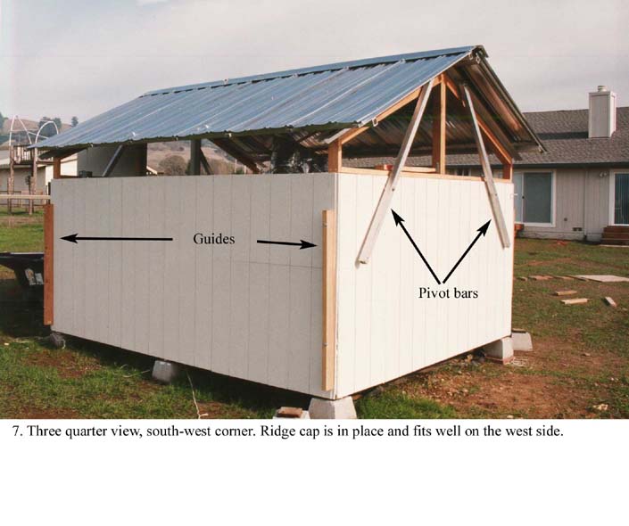 The south gable (open 2x4 structure behind the Pivot bars) swings down to open the observatory to the southern sky: essential since Scorpius and Sagittarius don't rise all that high here in Northern California.