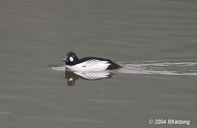 This striking black and white duck does indeed have a golden eye. There were several on Corte Madera Creek when I photographed this fellow on 8 January 2004. The image was captured with a Canon 10D using a Canon 70-200 f/2.8 L IS lens plus 1.4x extender.
