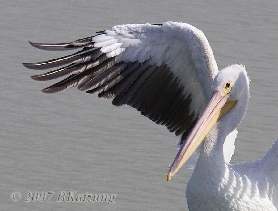 Below, just for comparison, a white pelican imaged at Las Gallinas Sanitary Ponds. Shot with a 100-400 mm zoom plus 1.4x extender.