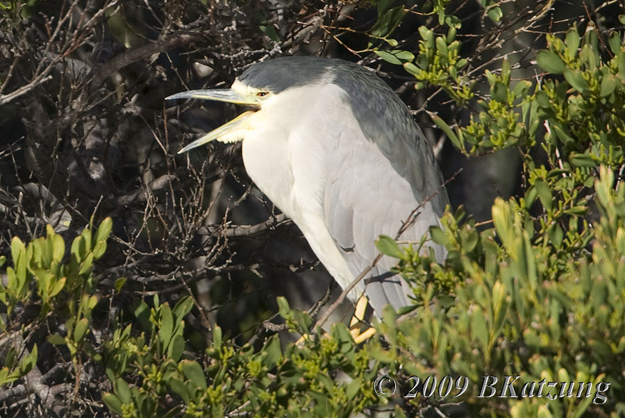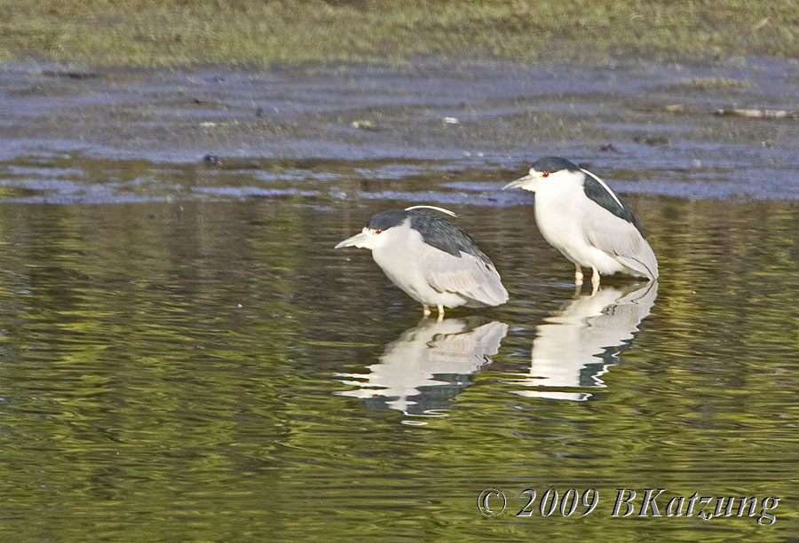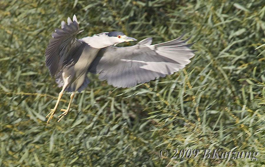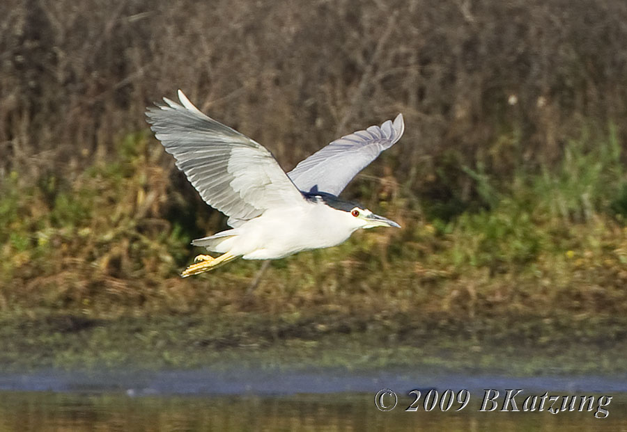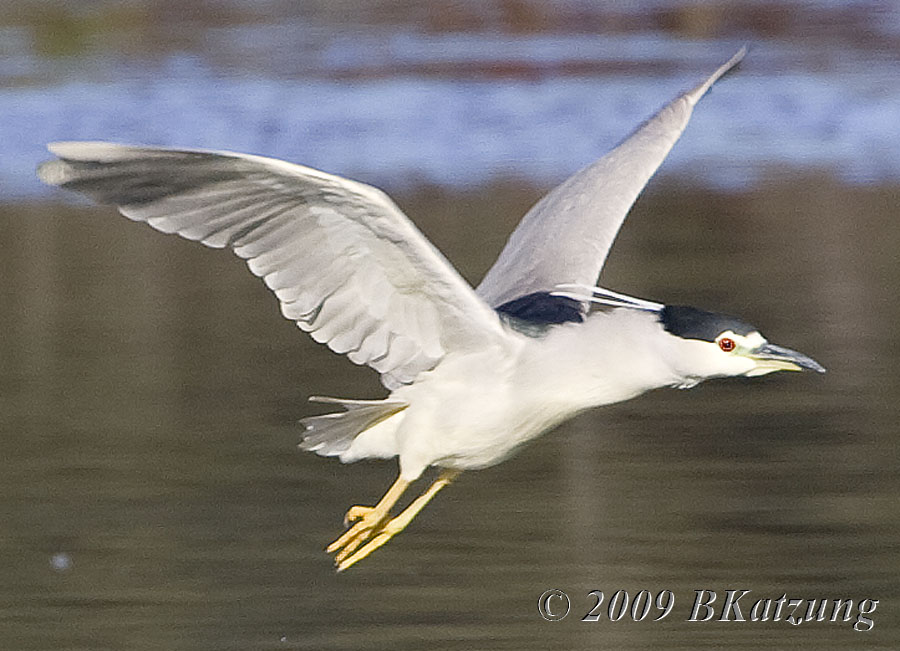 Black-Crowned Night Heron (Nycticorax nycticorax) For the first time at these ponds, the night herons were standing in the water or flying, in addition to lurking in the trees. And there was a larger number than usual. All shots with the 500 f/4 plus 1.4x extender on the 1D mk 2. Please scroll down.