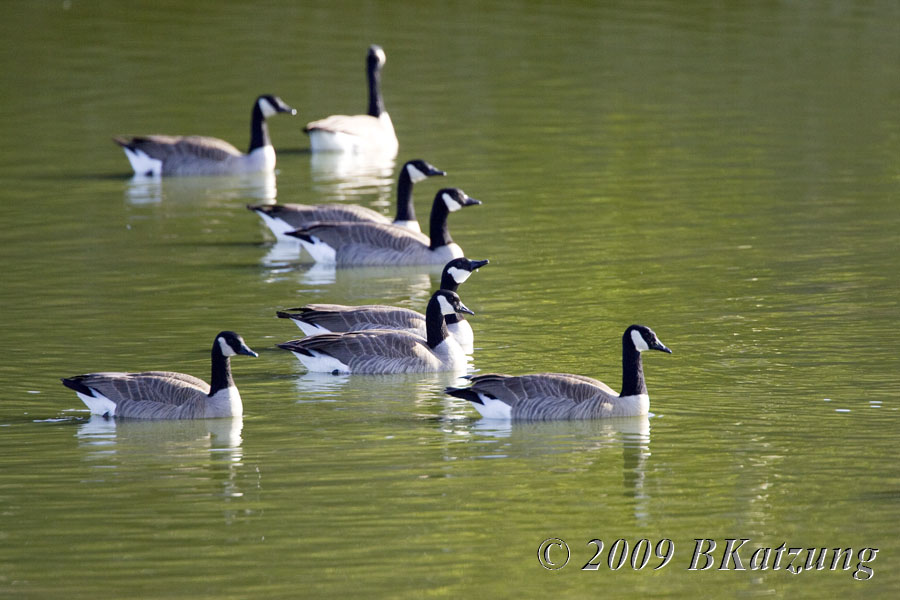 Canada Geese (Branta canadensis) As usual, there were huge numbers of canada geese in the fields near the ponds when I arrived. (I assume that if I arrived before dawn, they would be in the ponds and fly out at first light.) At some point during my 2 hour stay at the ponds, there was a terrific clatter of geese calling and they flew back into the pond, where I took a few shots. Perhaps the coyote had spooked them. All shots with the 500 f/4 and the 1.4x extender on the Canon 1D mk 2. Please scroll down.