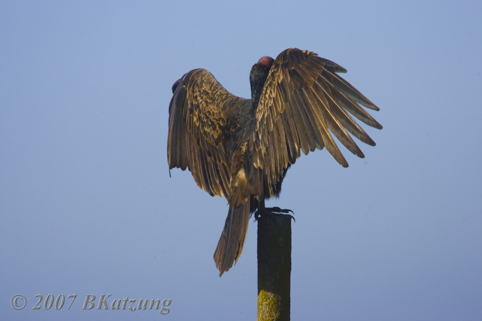 and soaring, it's a different story---they are gorgeous! The vultures enjoy a rest from soaring. The wind is pretty strong near the beaches.