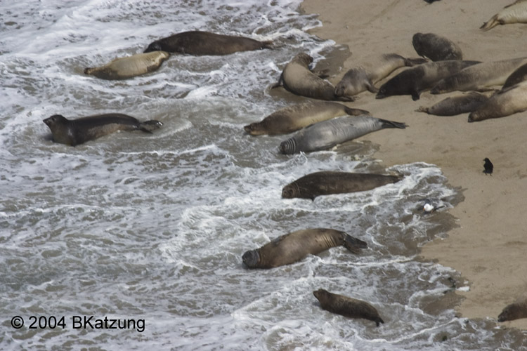 Above: Hikers on the cliff at Chimney Rock. Below: Sea Lions in the cove at Chimney Rock.