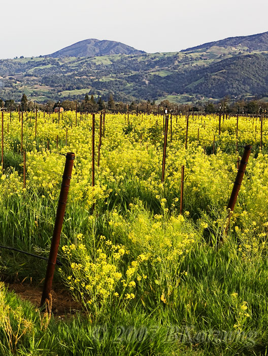 Sonoma County — Pine Flat Road March 2008 After several months of no imaging activity, I finally got around to dragging the camera up to our place in Sonoma County in March and paid a visit to the Alexander Valley vineyards and Pine Flat Road, which leads directly off Alexander Valley Road. (For some images of this area in April 2005, click HERE.) My timing was very bad this time because most of the mustard, which had been growing in the vineyards 2 weeks earlier, had been cut, and it was too early for much in the way of wildflowers. I did find some of each however, as well as a flock of wild turkeys. I also had one nice sunset while at the house in Windsor. Turkeys imaged with a 100-400 mm lens; all others with a 24-70 mm; all on the Canon 1D mark II. Please scroll down. (Ignore the copyright date of 2007, these images were really taken in March 2008.)