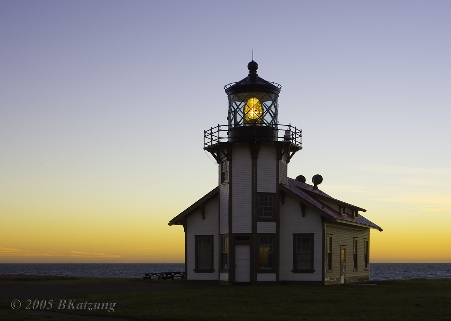 Point Cabrillo Light House and Surroundings A small light house, beautifully restored and with foghorns facing the ocean and a functioning light, with a gift shop in the lower part of the building. The support buildings are being converted into a B&B. This day was completely cloudless, so the sunset provided little drama. Several images, please scroll down.