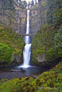 Oregon in Spring Alice and I made a trip to Portland, Oregon in the last week of March and first few days of April, 2007. The main purpose was to raid the shelves at Powell's City Of Books bookstore. We succeeded in depleting our funds, but fell far short of making a dent in Powell's incredible collection of new and used books. While there we found the nearby Henry's Tavern an excellent place to eat. We made three photographic excursionsduring this trip: the first and third were stops on the way to and from Portland at the Wooden Shoe Tulip Farm, just outside Woodburn, a small town right on the main north-south highway, I-5. We hit the farm at about the right time to catch a few Kodachrome-Velvia moments with the fields of tulips. Our second trip was to visit a few waterfalls up the Columbia River Gorge. I was not thinking properly on this trip and came back with only a few keepers. In fact only a few tulips and one waterfall shot were worth posting here. Back in California, we found the sides of the highway loaded with a bright red-purple shrub that we had not seen before and took a few shots of it. Reference to a plant book showed that this was the famous "red bud" that I had been hearing about incessantly on the FM-NorCal internet group. The tulip and waterfall shots are on separate pages (click on the thumbnail), the red bud shots and a snapshot of Mt Shasta are below, please scroll down.