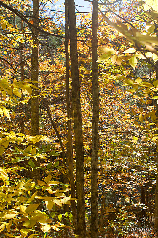Above, trees lining the parking lot in Smuggler's Notch State Park. Below, trees along Gold Brook Rd.