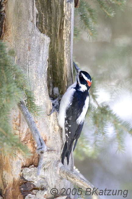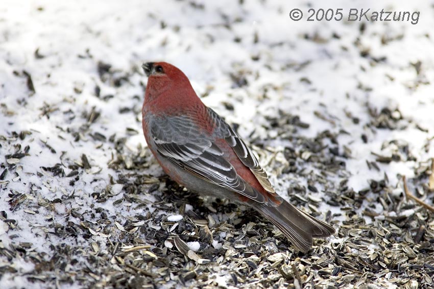 Above (8): a Hairy Woodpecker (Picoides villosus). Below (9): a Pine Grosbeak (Pinacola enucleator).