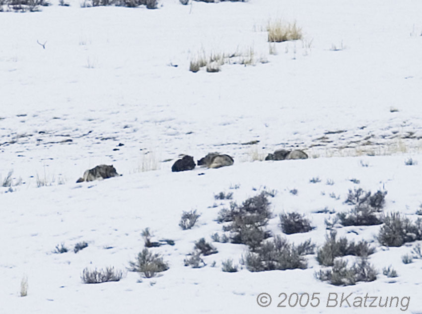 Above: late afternoon. Probably the Slough Creek Pack, a dominant pack in the Lamar Valley in 2005.
