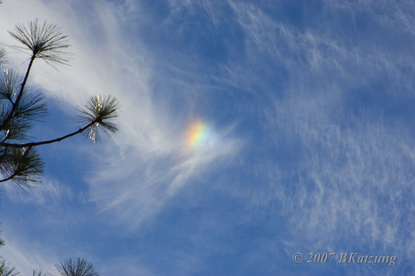 Below, a sundog observed in the clouds beginning to form the day before the storm.