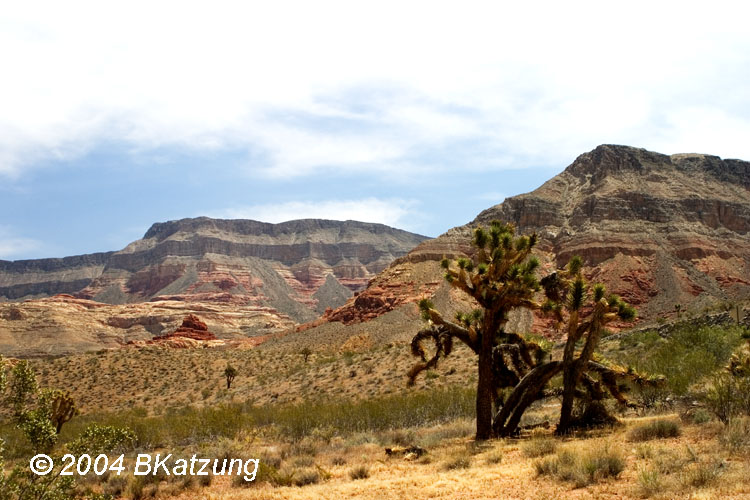 The mesas in the background show the striking alternation of dark red (sandstone) and gray (limestone) layers outside the Park. See the brief outline of the geology of the area by clicking here.
