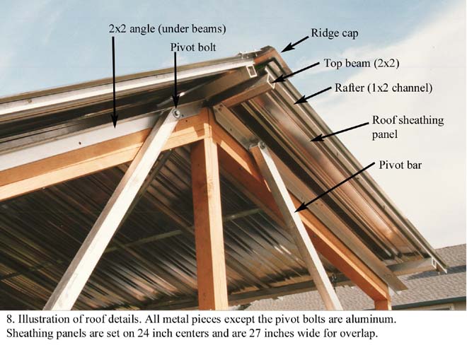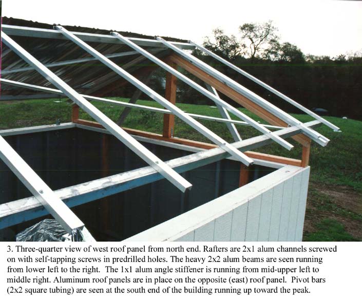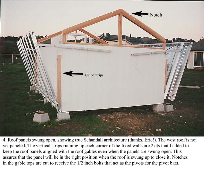 The south gable (open 2x4 structure behind the Pivot bars) swings down to open the observatory to the southern sky: essential since Scorpius and Sagittarius don't rise all that high here in Northern California.